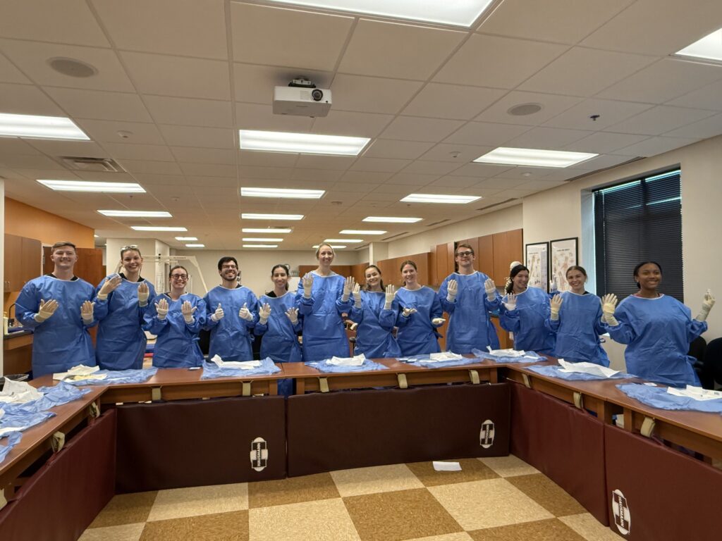 Our didactic-year PA students completed their Surgical Workshop, where they practiced surgical scrubbing, gowning, advanced suturing, and surgical knot tying.