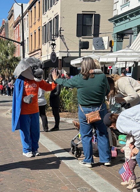 Our South University, Savannah staff and #SouthUAlumni proudly walked in the Savannah Veterans Day Parade yesterday, celebrating and honoring our nation’s heroes. Along the 1.5-mile route through downtown, Stinger brought smiles and high fives to veterans, supporters, and families while staff handed out frisbees, candy, and swag to the crowd lining the sidewalks. High School marching bands filled the air, keeping spirits up on a cold fall day! Thank you to all who serve and have served, we’re proud to walk beside the 700,000 veterans who call Savannah home!